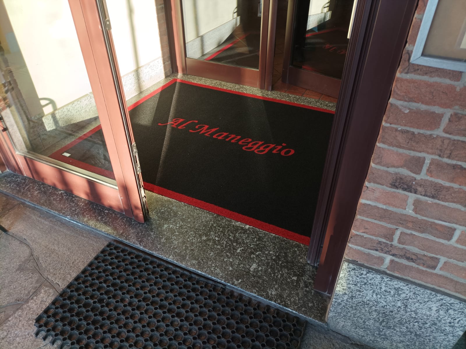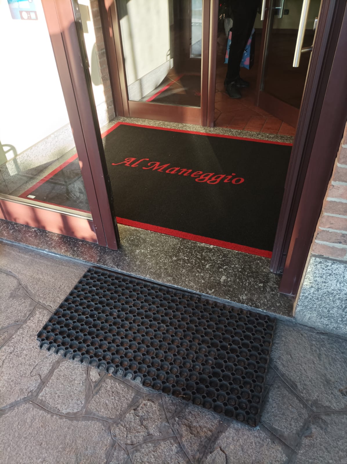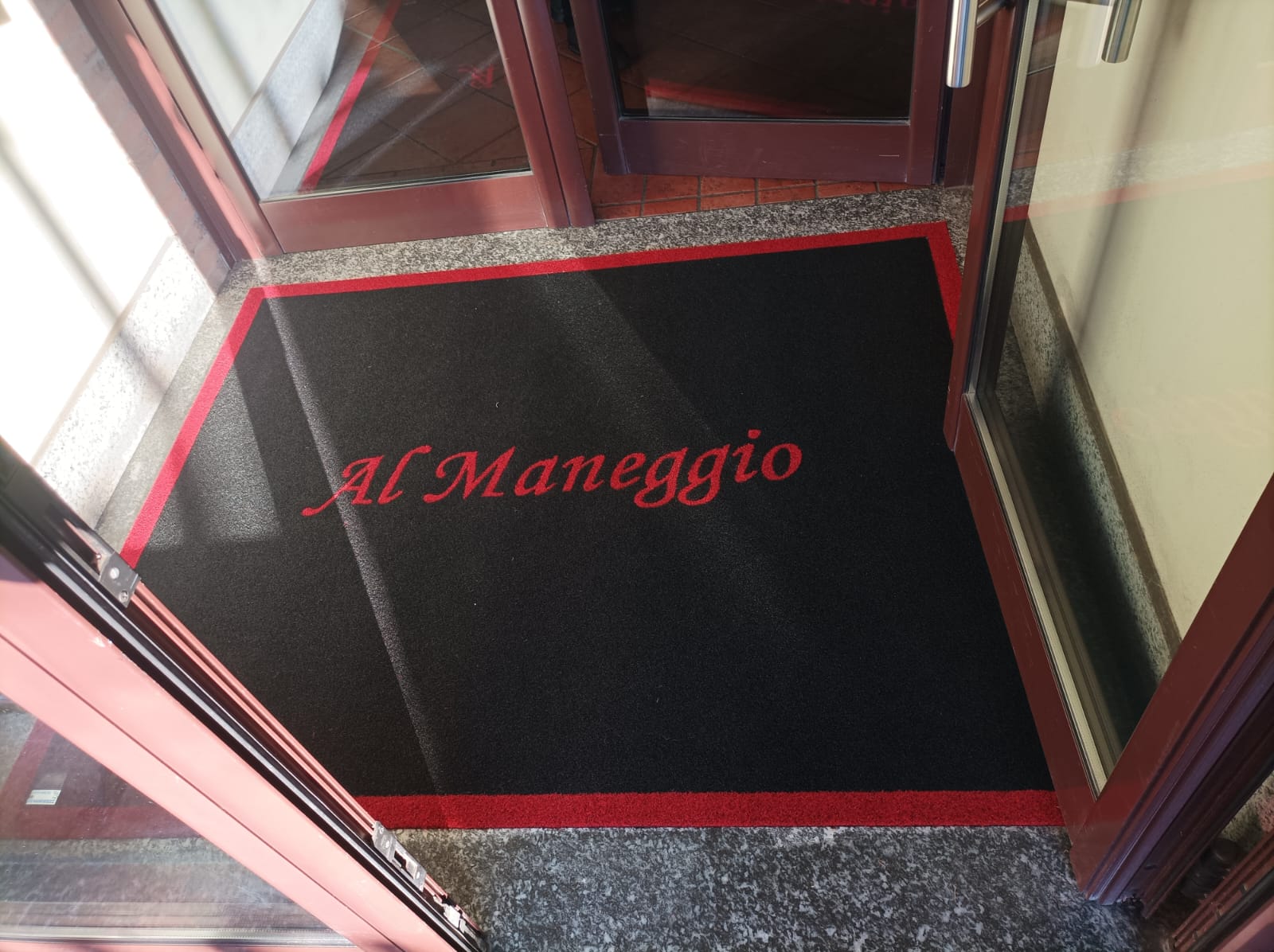 zerbino sintetico personalizzato ad intarsio per ingresso ristorante san bovio, peschiera borromeo